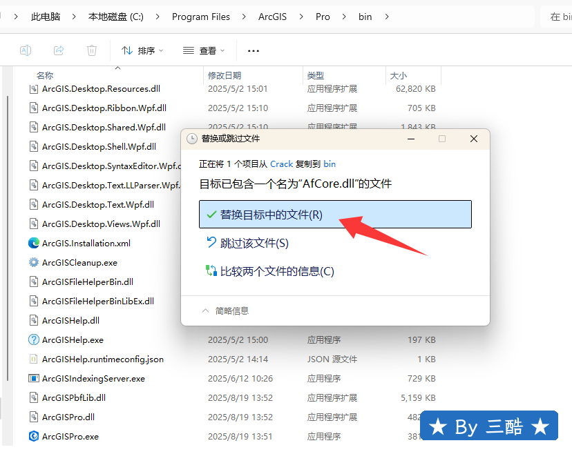 20、在ArcGIS Pro 3.5.3安装路径下粘贴AfCore.dll文件,选择替换。