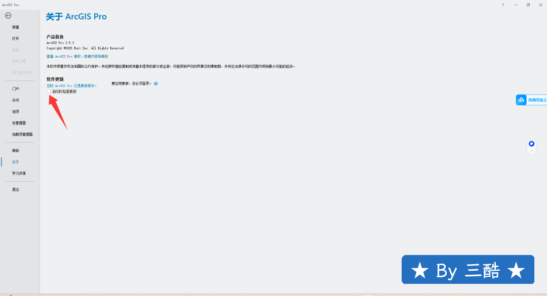 22、ArcGIS Pro 3.5.3安装成功,点击设置-关闭软件更新。