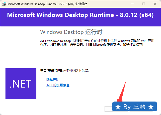 2、首先以管理员身份运行windowsdesktop-runtime。