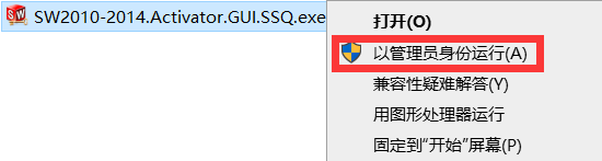 14.选中【SW2010-2014】,鼠标右击“以管理员身份运行”