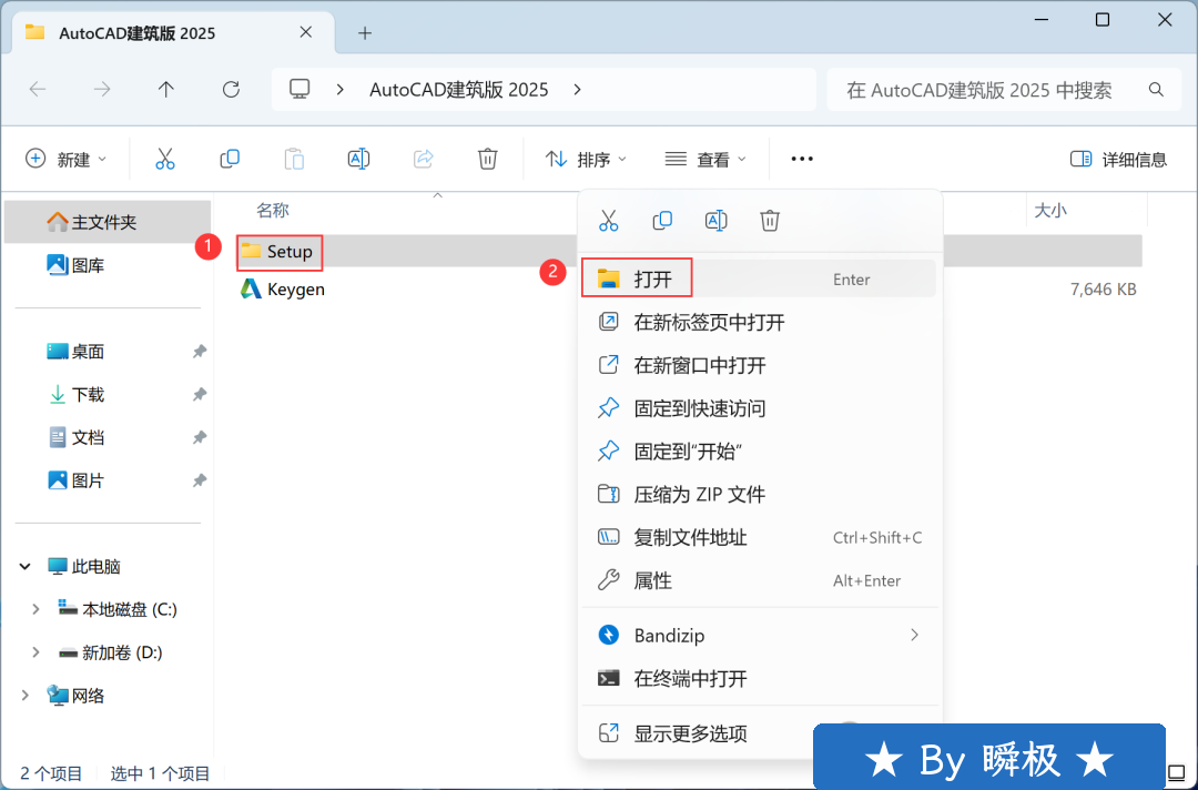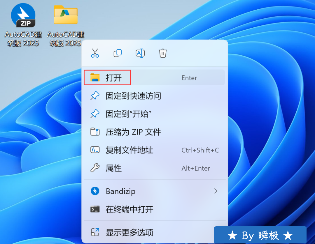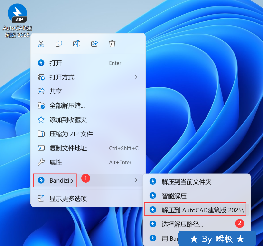 1、下载AutoCAD建筑版 2025软件安装包到电脑上,右键选择【解压到AutoCAD建筑版 2025\】