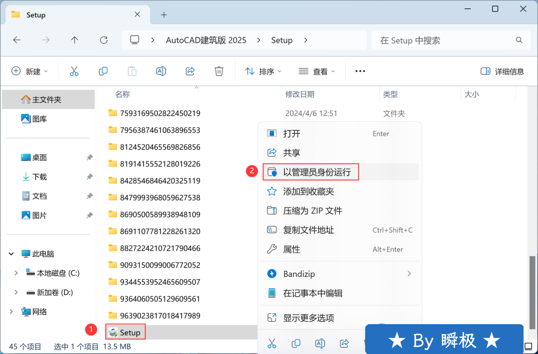 4、找到【Setup】应用程序,右键选择【以管理员身份运行】它