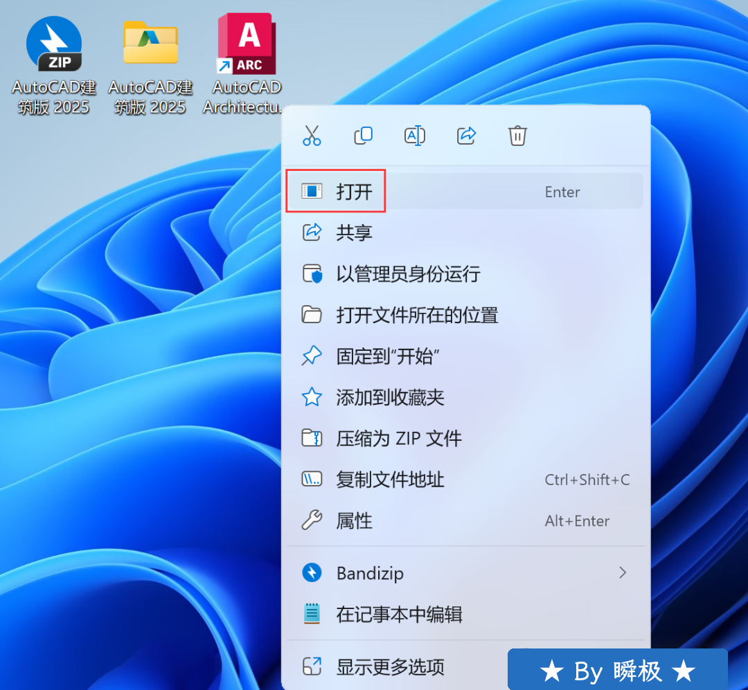 10、回到桌面,右键桌面上的【AutoCAD Architecture 2025软件图标】,点击【打开】