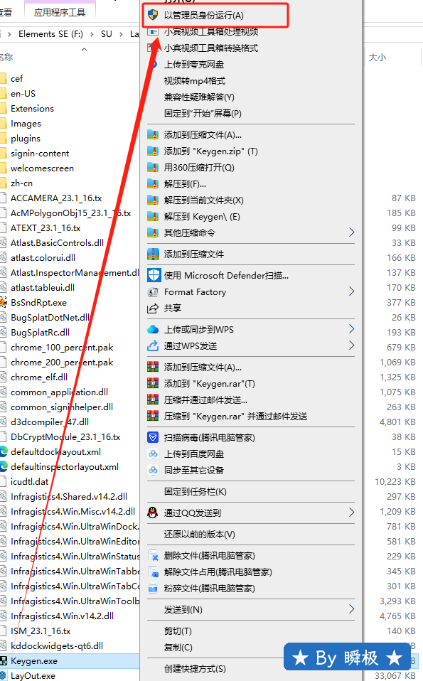 10.鼠标右击粘贴后的【Keygen】选择【以管理员身份运行】