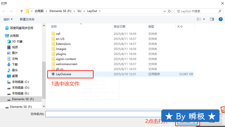 13、打开步骤3修改的安装位置【如:D:SU\LayOut】并选中【LayOut】,点击【打开】。
