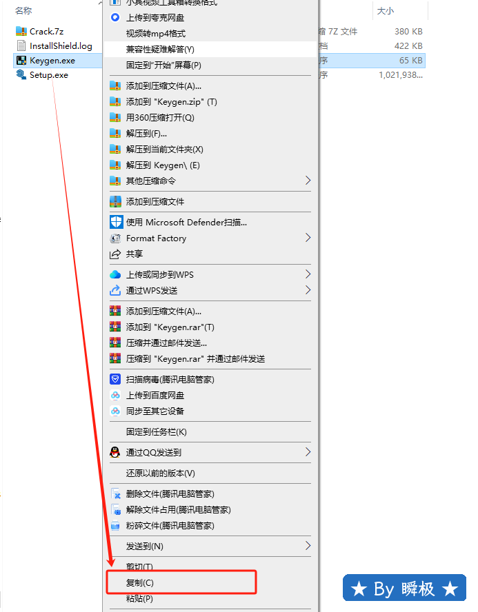 7.鼠标右击解压出来的【Keygen】选择【复制】