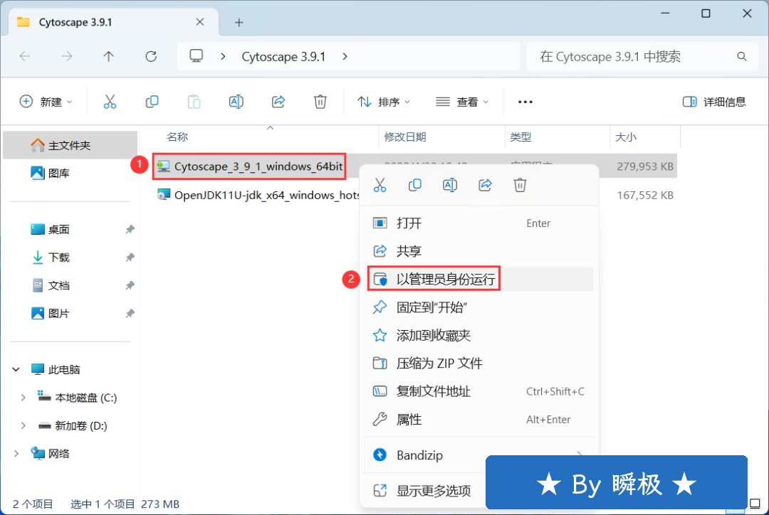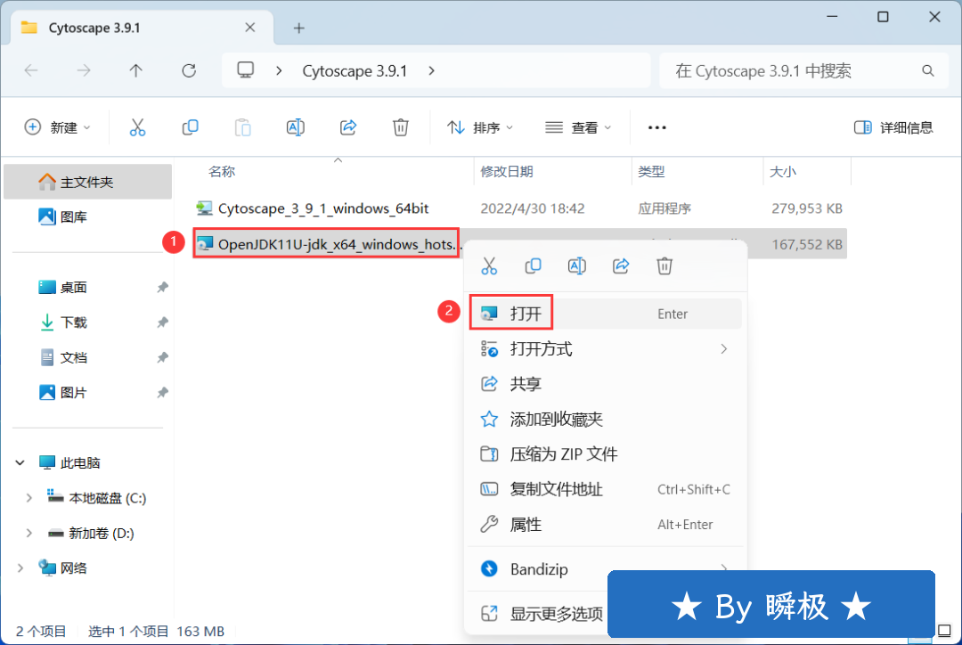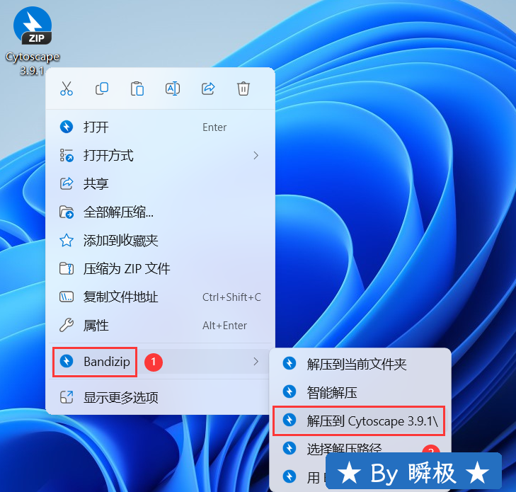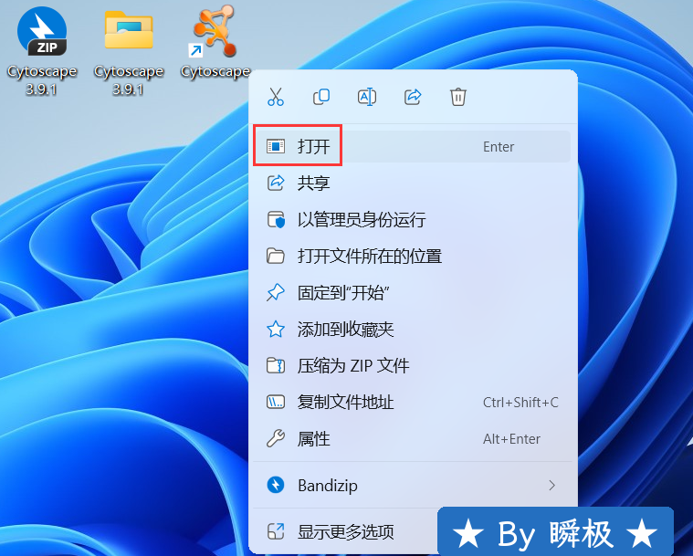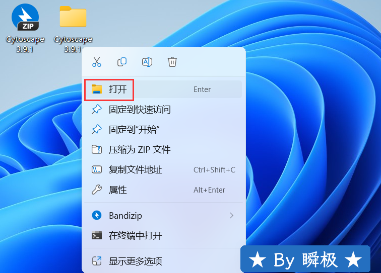 1、下载Cytoscape 3.9.1软件安装包到电脑上,右键选择【解压到Cytoscape 3.9.1\】 2、右键【打开】解压后的文件夹