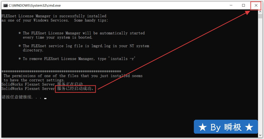 12.等待显示【服务已经启动成功】,然后点击【X】关闭窗口。