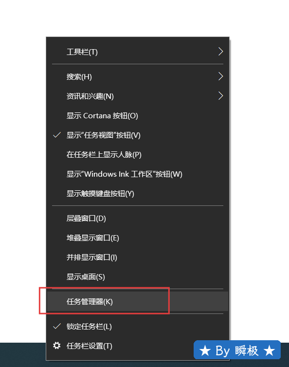 5.鼠标可以移动到电脑底部任务栏右键打开【任务管理器】。(也可以同时按键盘ESC+Shift+Ctrl打开)