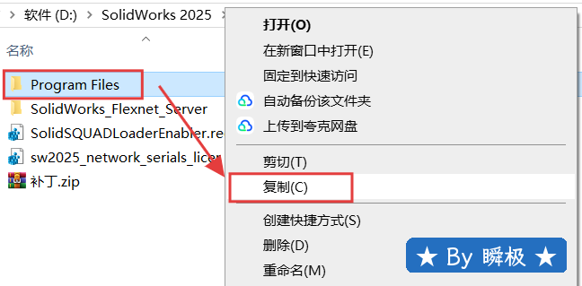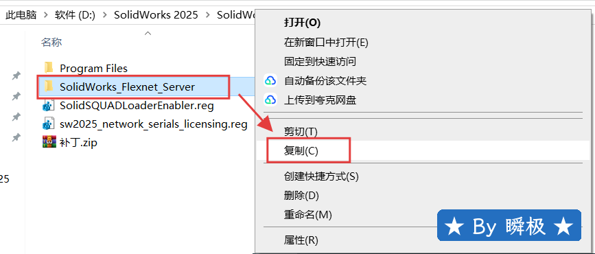 8.选中【Solidworks_Flexnet....】文件夹,鼠标右键进行【复制】(也可以选中直接Ctrl+C键复制)