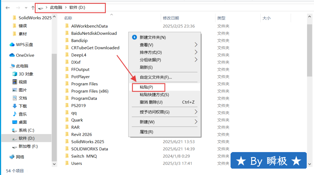 2.双击打开解压好的【SolidWorks 2025】文件夹。 3.双击打开【Crack】文件夹。