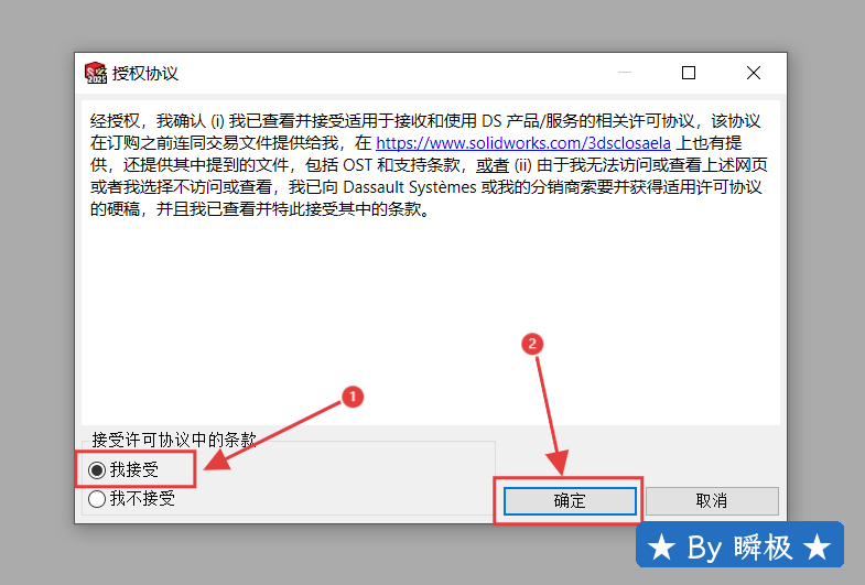 24.更改好,打勾【我接受SOLIDWORKS】,然后点击【现在安装】。