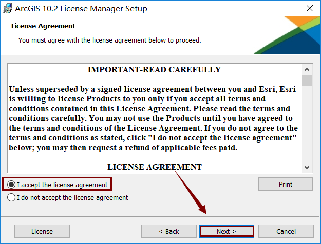 4. 选择“I accept the license agreement”,然后点击“Next”。