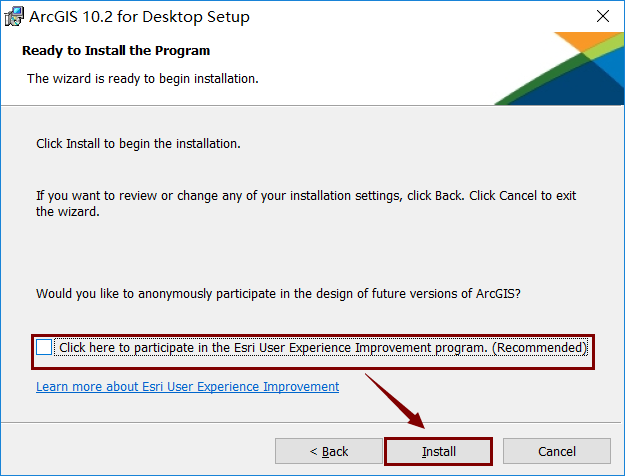 19. 将“Click here to participate in the...”前面复选框的勾去掉,然后点击“Install”。