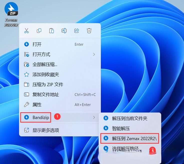 1、下载Zemax 2022R2软件安装包到电脑上,右键选择【解压到Zemax 2022R2\】