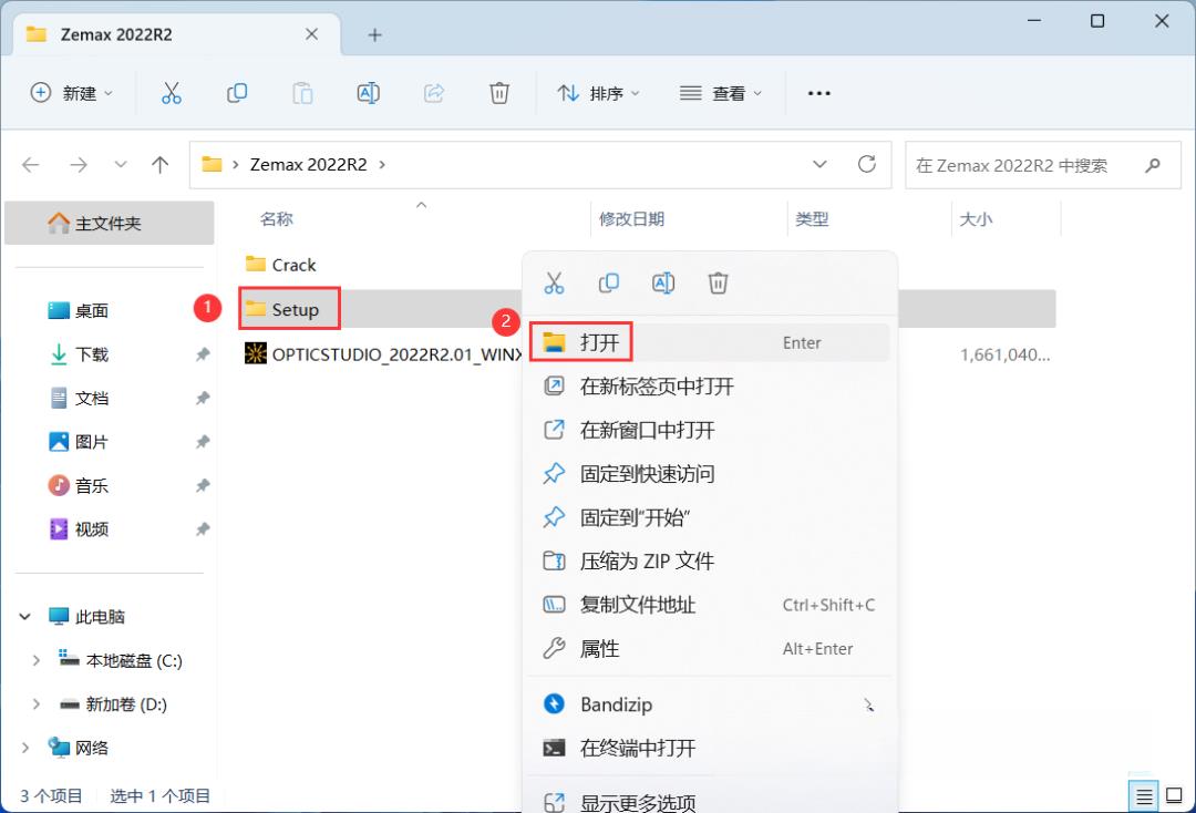 15、回到Zemax 2022R2文件夹,找到【Crack】文件夹,右键【打开】它