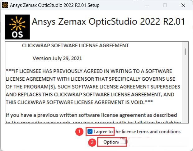 33、勾选【我接受】,再点击【Options】