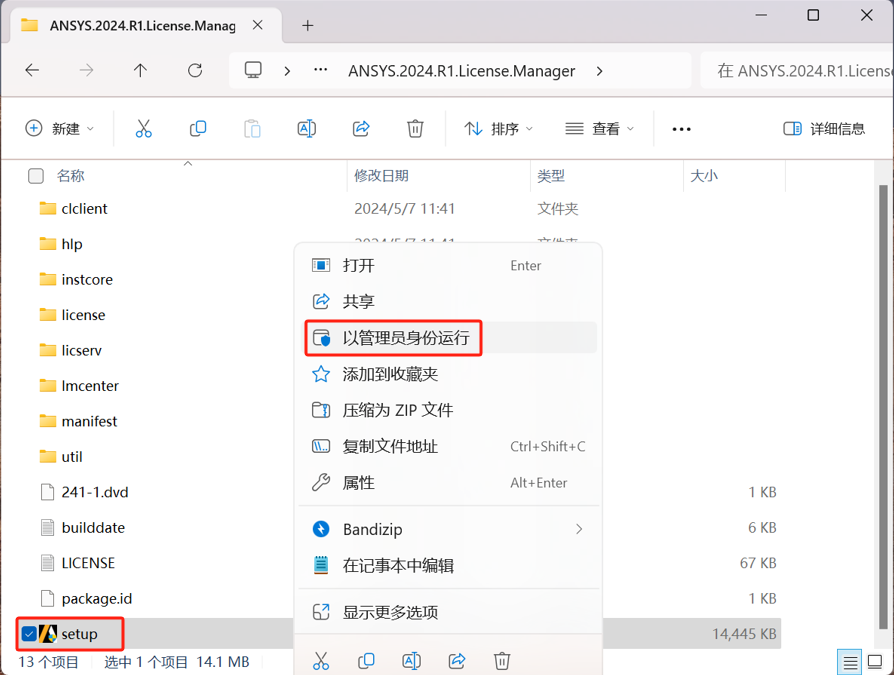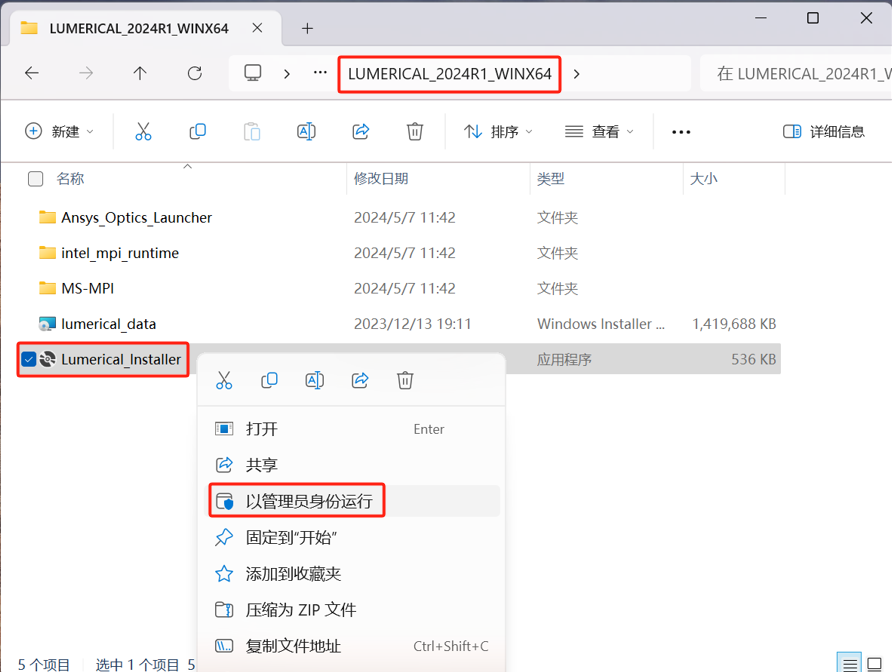 28.回到安装包,打开 LUMERICAL.2024R1.WINX64 文件夹,以管理员身份运行安装程序