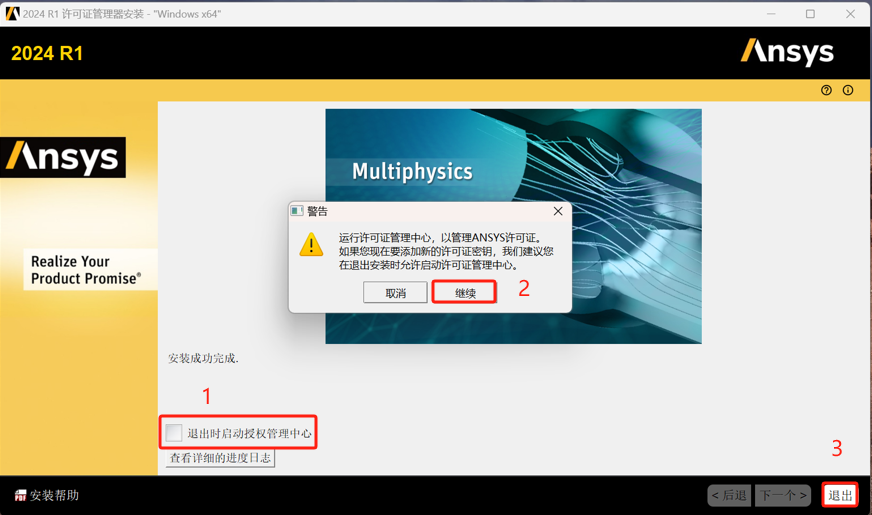11.取消勾选,点击继续,点击退出