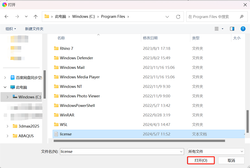20.在C:Program Files路径下,找到license文件,点击打开