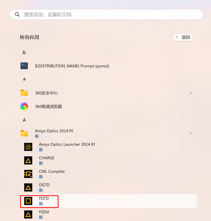 36.在开始菜单找到FDTD,把它拖到桌面创建快捷方式