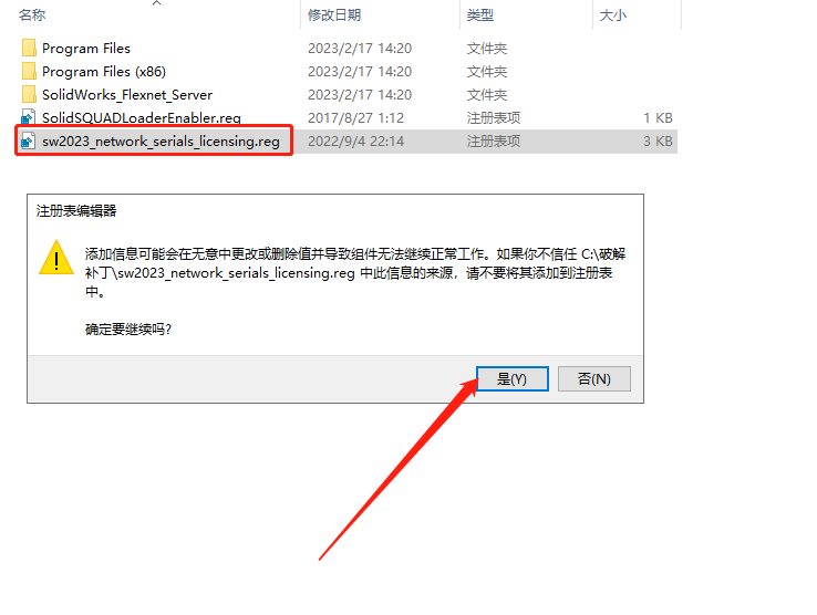 回到安装包,找到SolidSQUADLoaderEnabler.reg双击运行,弹出对话框选择是