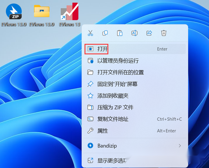 27、右键桌面上的【EViews 13软件图标】,点击【打开】