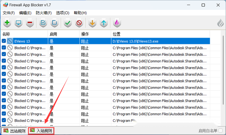 26、将EViews 13软件图标拖到Firewall软件的【入站规则】内