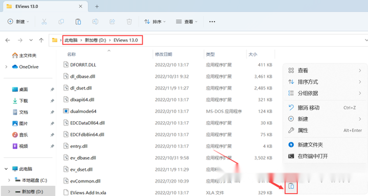 18、找到【EViews13】应用程序,右键点击【复制按钮】