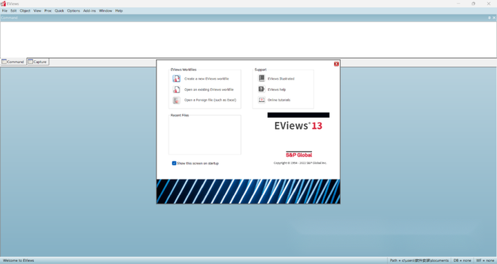 EViews 13.0 是专门为大型机构开发的、用以处理时间序列数据的时间序列软件包的新版本。它具有操作简便且可视化的操作风格,主要体现在从键盘或从键盘输入数据序列、依据已有序列生成新序列、显示和打印序列以及对序列之间存在的关系进行统计分析等方面。可以使用鼠标对标准的Windows菜单和对话框进行操作,操作结果出现在窗口中并能采用标准的Windows技术对操作结果进行处理。