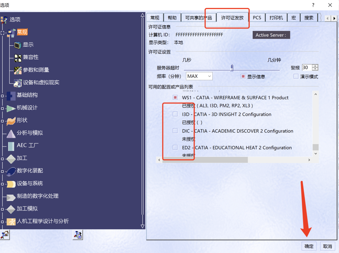 34.在许可证发放界面,取消勾选【DIC…】、【ED2…】、【I3D…】,然后点击确定。