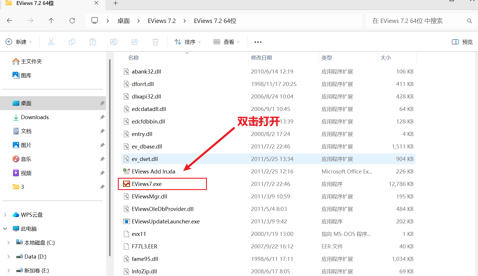 1、下载解压安装包,双击EViews7.exe即可打开软件进行使用。