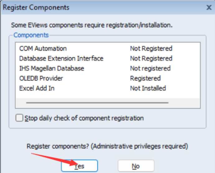 2.初次打开会提示注册组件,点击yes即可)