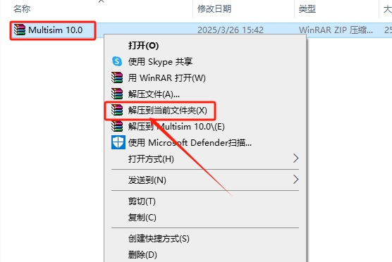 1.打开下载的Multisim软件安装包,鼠标右击压缩包选择【解压到当前文件夹】。