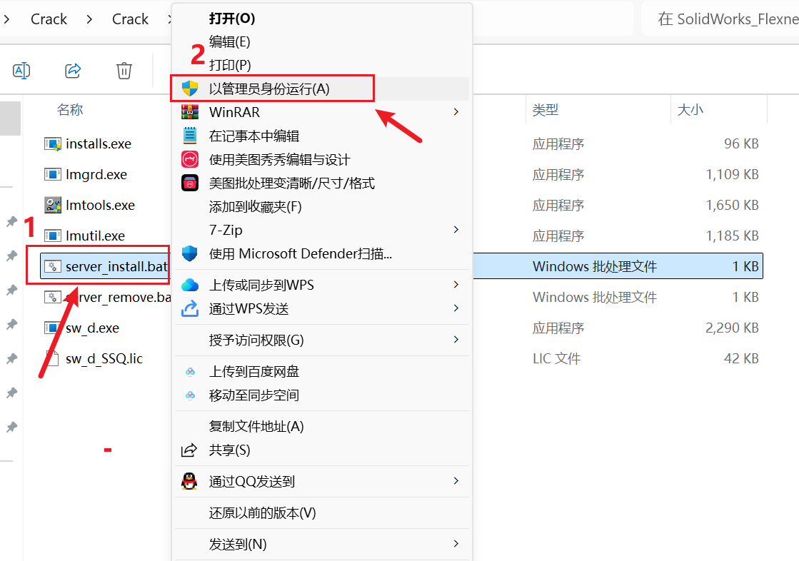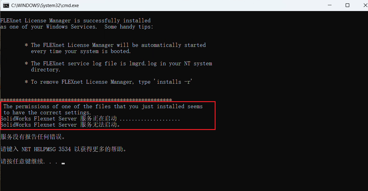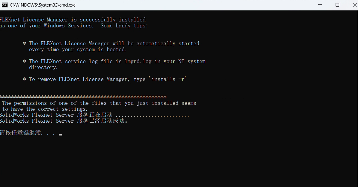 因为Solidworks软件的服务许可程序没有设置对和没有启动成功,也就是在刚开始复制到C盘的"C:\SolidWorks_Flexnet_Server\server_install.bat"文件没有正常启动。