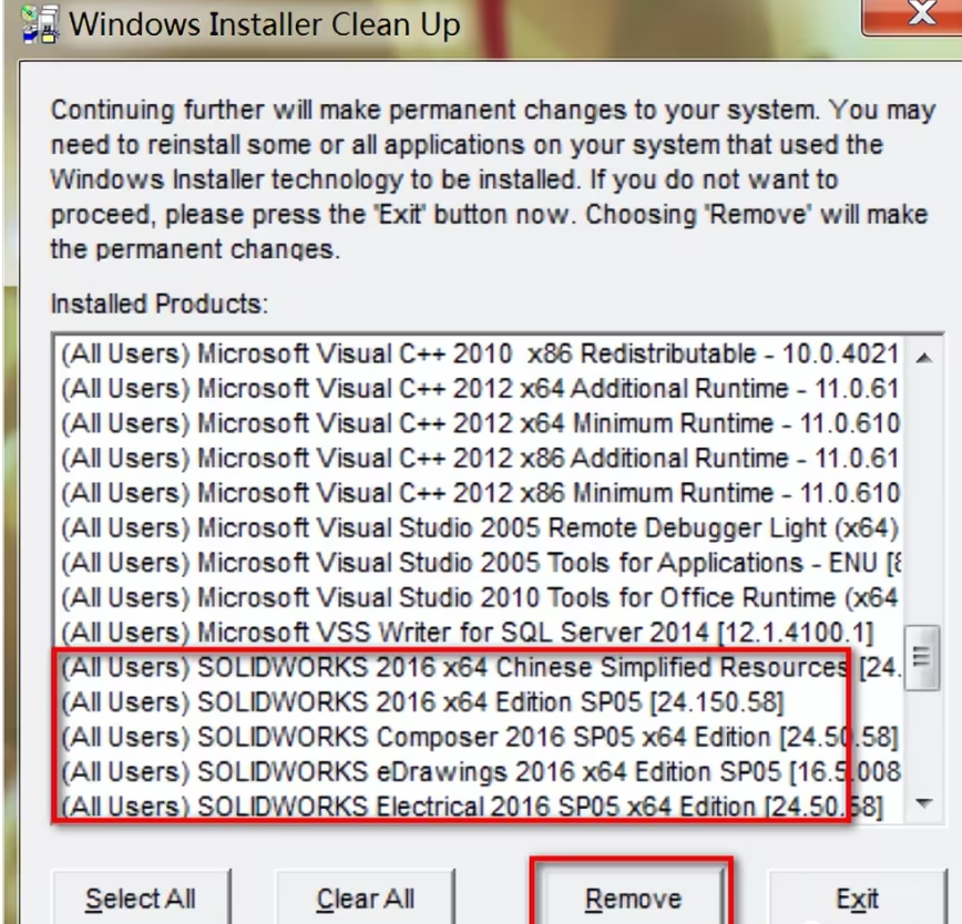 2、安装“Windows Install clean up”工具然后卸载所有solidworks软件