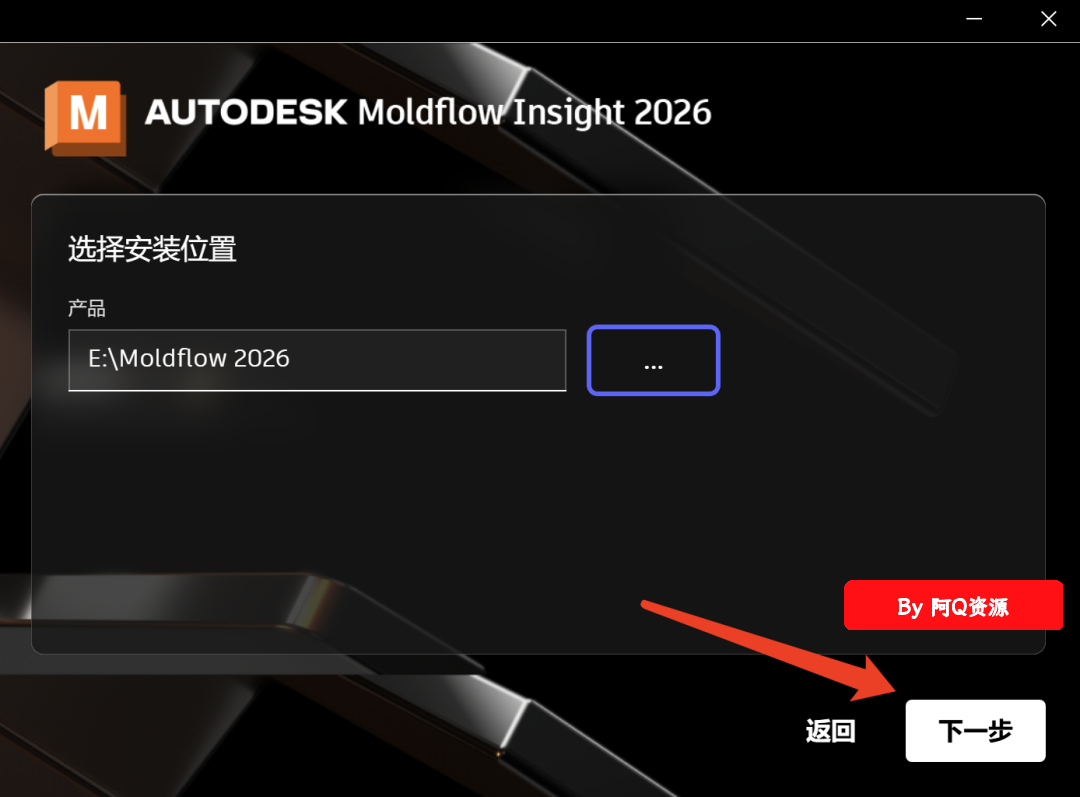 5.点击【…】选择软件安装位置(建议不要安装在C盘,可在E盘或其它磁盘下新建一个“Moldflow 2026”文件夹)。