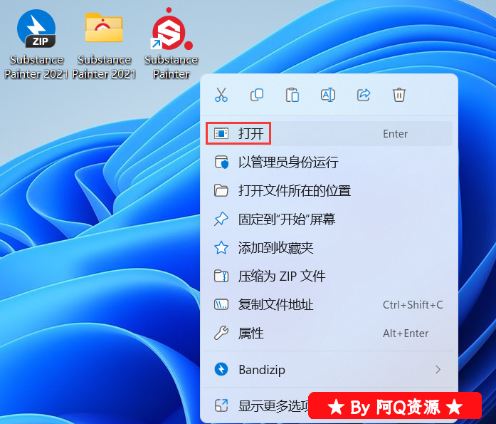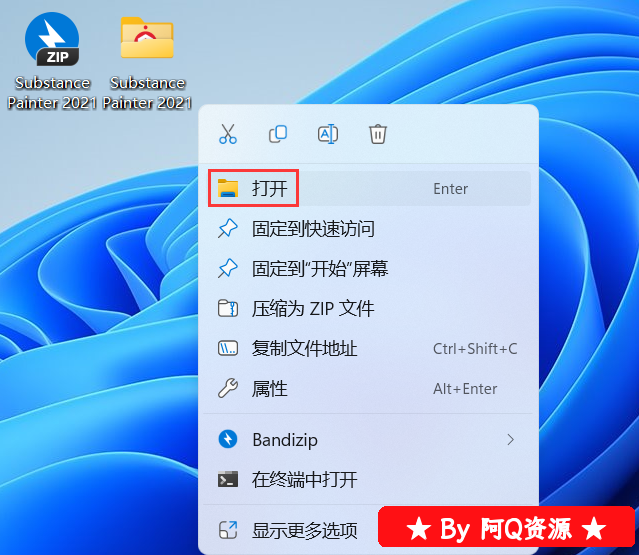 14、回到桌面,右键桌面上的【Substance Painter 2021软件图标】,点击【打开】