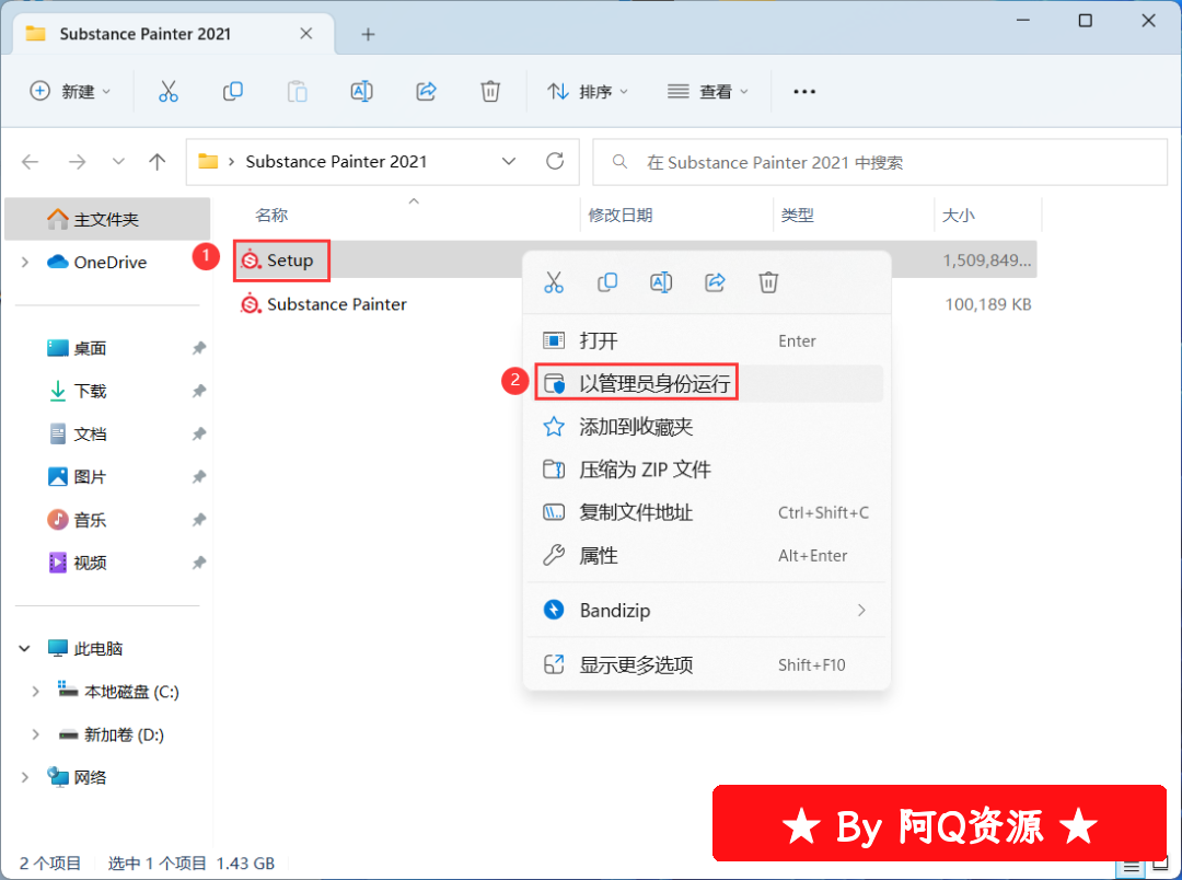 3、找到【Setup】应用程序,右键选择【以管理员身份运行】它