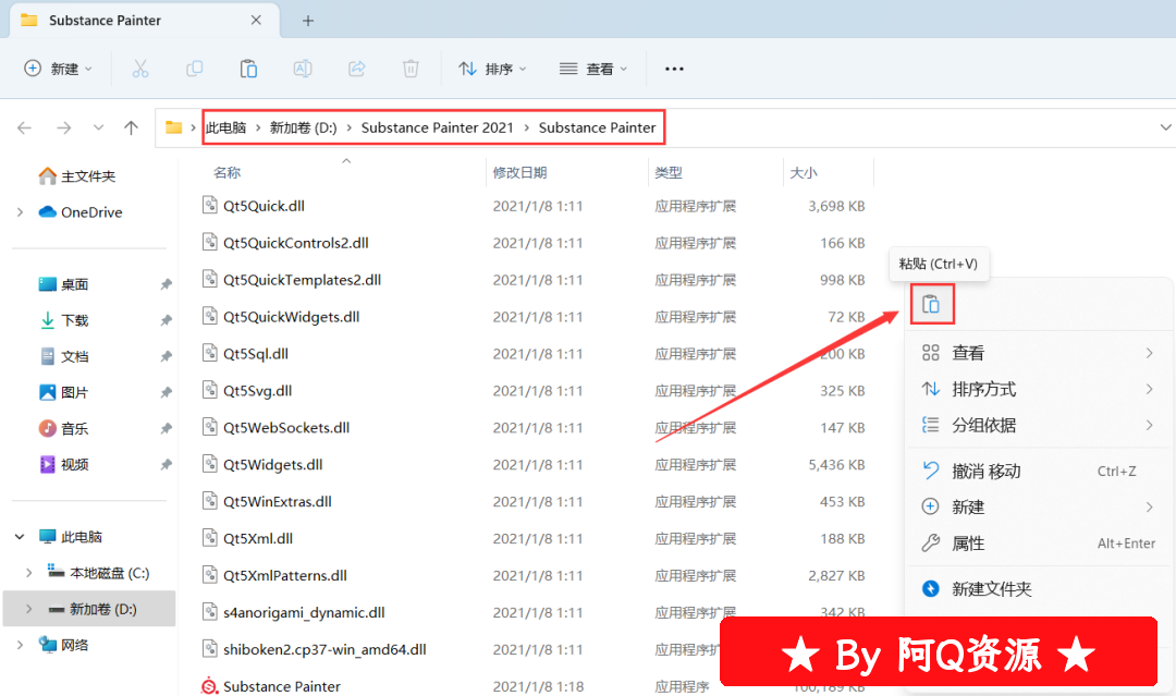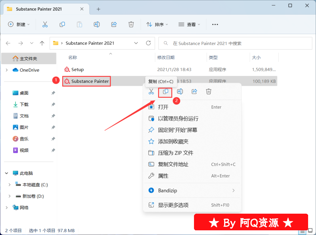 10、回到Substance Painter 2021文件夹,找到【Substance Painter】应用程序,右键点击【复制】它