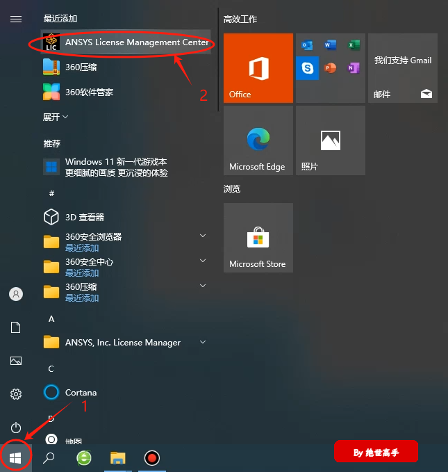 17、点击桌面任务栏中的【开始】-点击【最近添加】中的【ANSYS License Manager Center】。