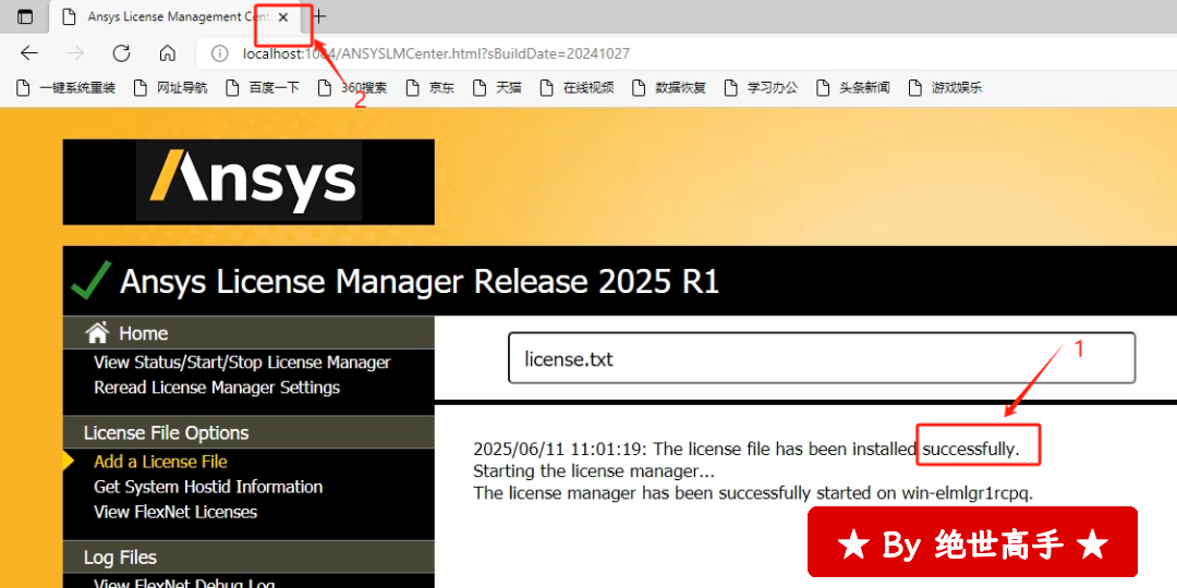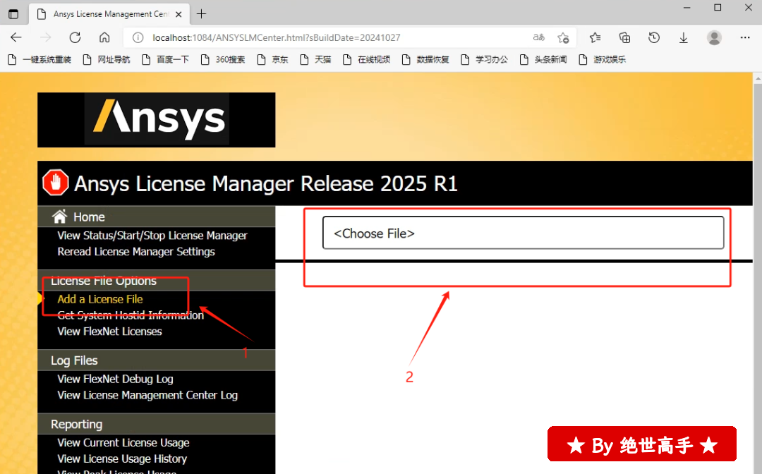22、回到步骤18所在页面,点击【Add a License File】,点击【Choose File】。