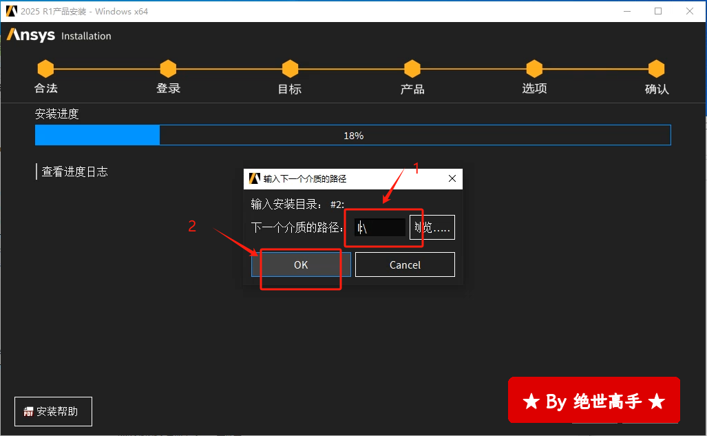 42、当安装进度到18%时,输入步骤41装载的磁盘(如:I),点击【OK】。