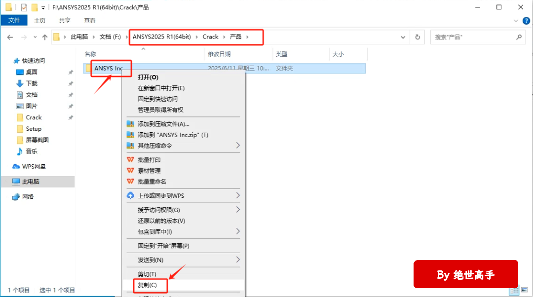 59、打开安装包解压后的【ANSYS2025 R1(64bit)】文件夹中的【Crack】文件夹,双击打开【产品】文件夹。