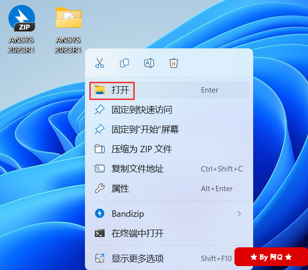 57、右键桌面上的【Mechanical 2023 R1软件图标】,点击【打开】