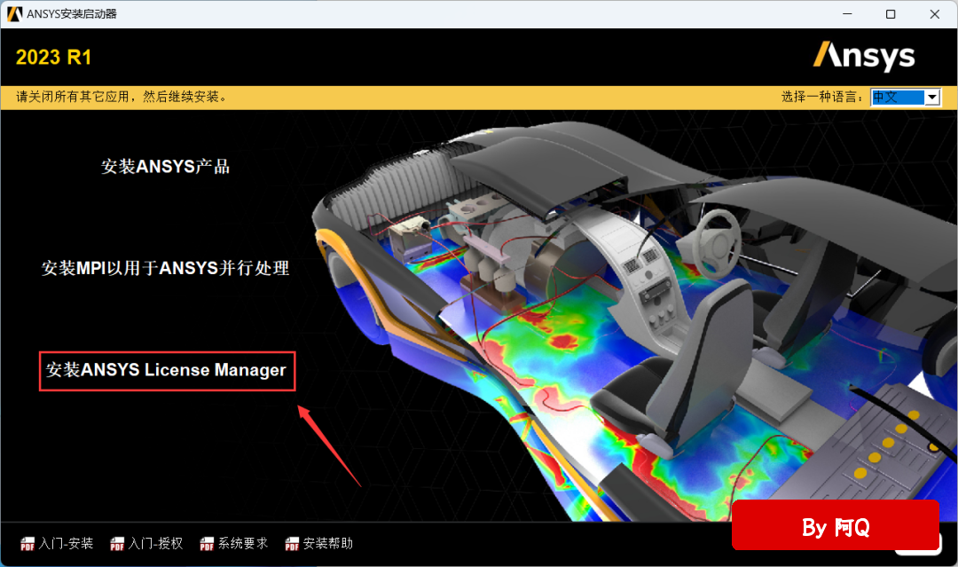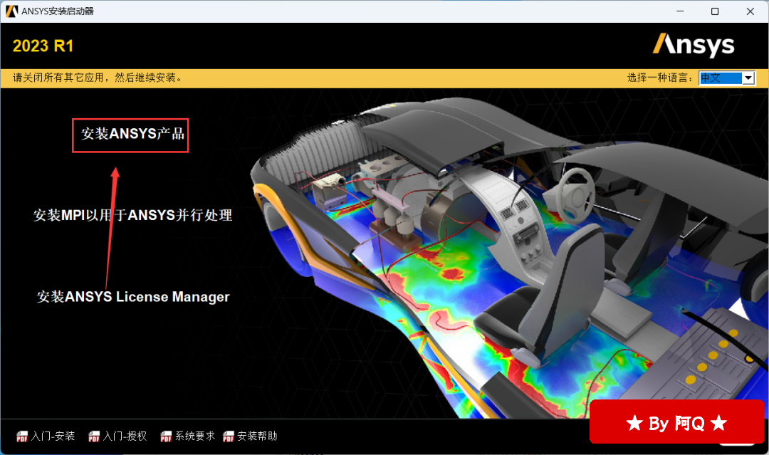 34、回到ANSYS 2023R1安装程序,点击【安装ANSYS产品】