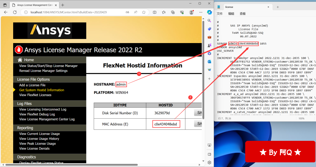23、回到license文档,将xxxxxxxxxxxx替换成MAC Address(E)的HOSTID值
