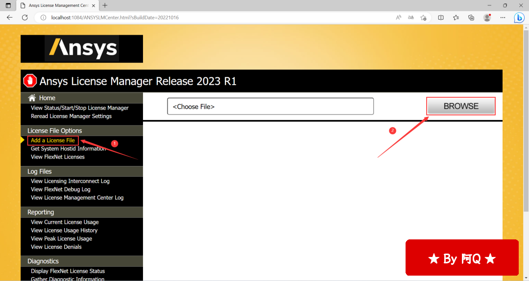 30、回到浏览器界面,点击左侧的【Add a License File】,再点击【BROWSE】