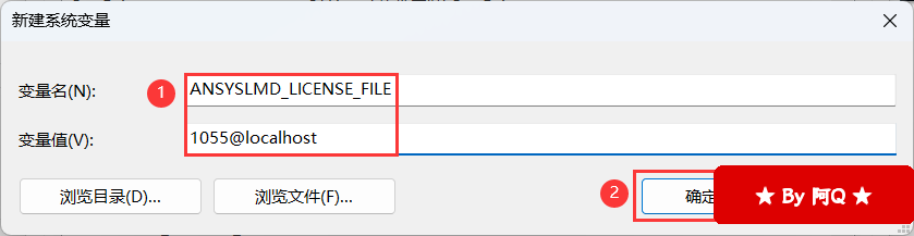 53、变量名输入:ANSYSLMD_LICENSE_FILE;变量值输入:1055@localhost,再点击【确定】