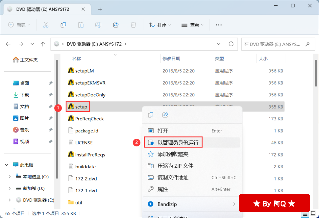 4、找到【setup】应用程序,右键选择【以管理员身份运行】它